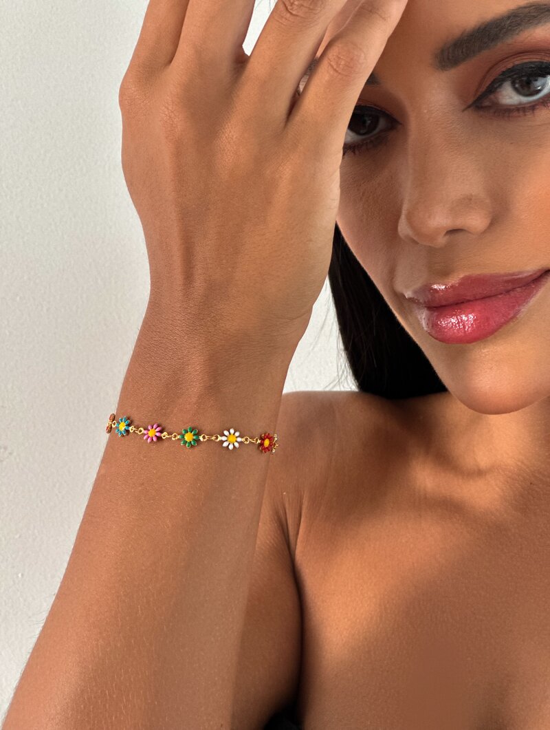 Pulseira Folheada a Ouro 18k Margaridas Coloridas