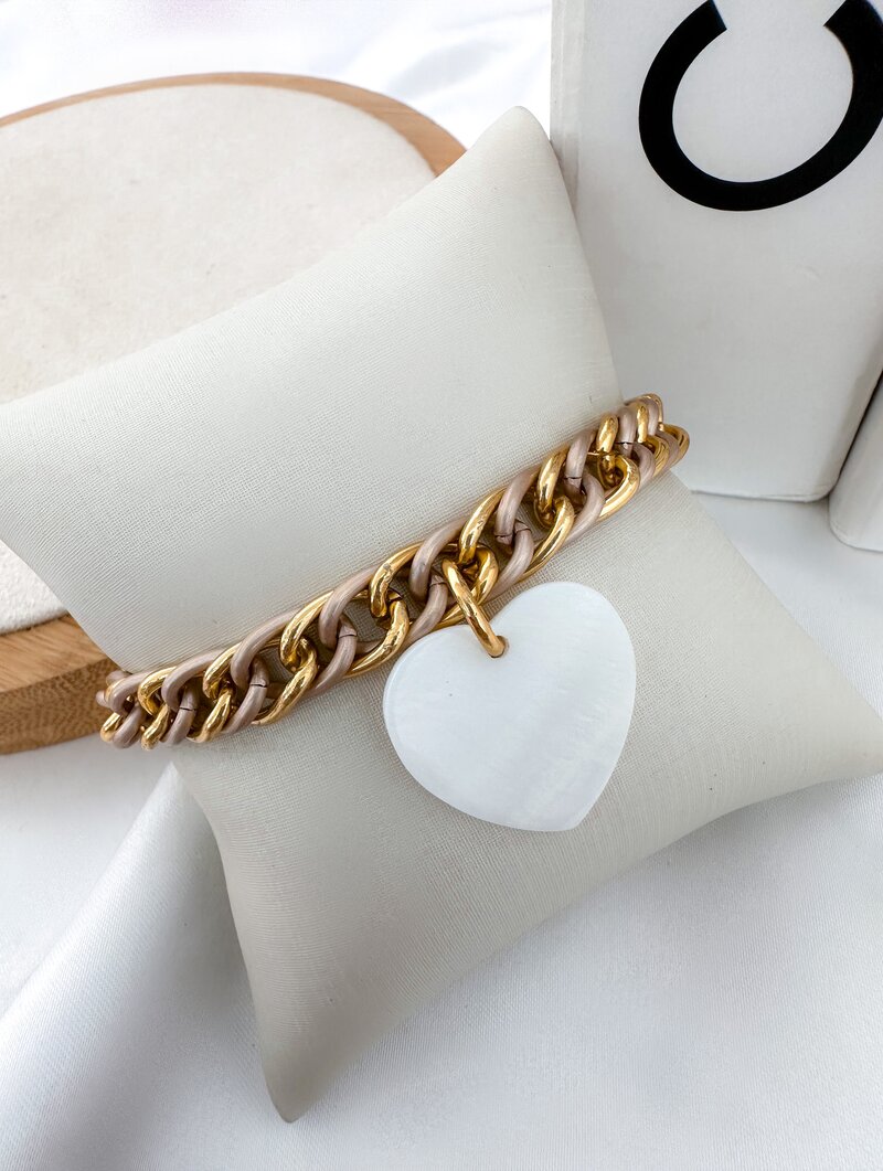 Pulseira Folheada a Ouro 18k Mix Banho com Coração Madrepérola