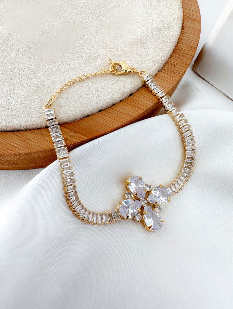 Pulseira Folheada a Ouro 18k Navetes com Flor de Zircônia