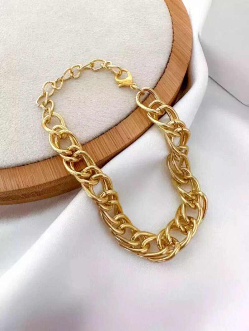 3. PULSEIRA FOLHEADA A OURO 18K PULSEIRA ELO DUPLO.