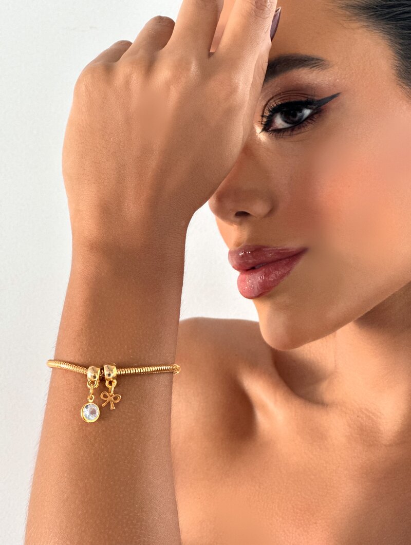 3. Pulseira Folheada a Ouro 18k Rabo de Tatu com Zircônia e Laço