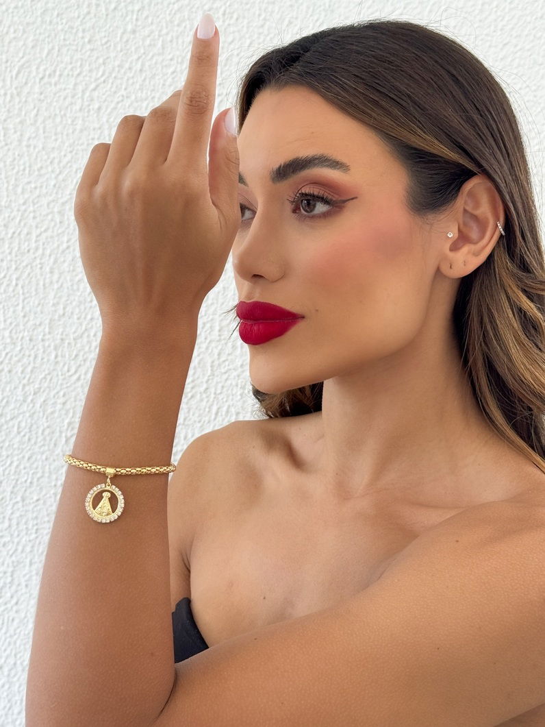 Pulseira Folheada a Ouro 18k Rabo de Tatu Pingente "Nossa Senhora"