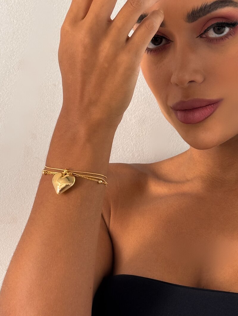 3. Pulseira Folheada a Ouro 18k Três Fios com Coração Liso