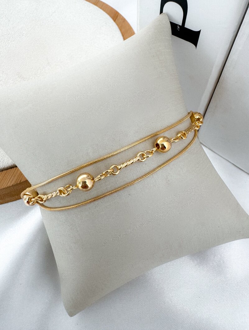 Pulseira Folheada a Ouro 18k Três Fios com Esferas Lisas com Entremeios