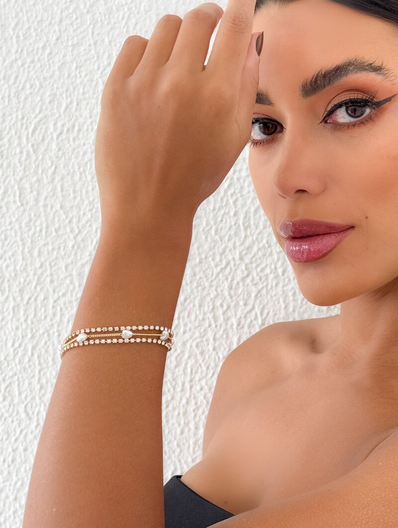 3. Pulseira Folheada a Ouro 18k Três Fios com Micro Zircônias e Corações