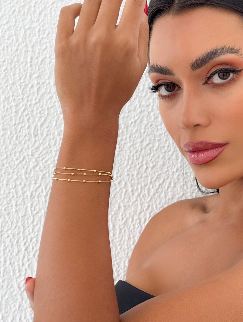 Pulseira Folheada a Ouro 18k Três Fios com Mini Esferas