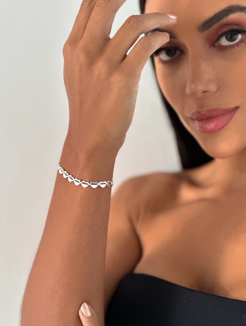 3. Pulseira Folheada a Prata 925 Corações com Detalhe Vazado