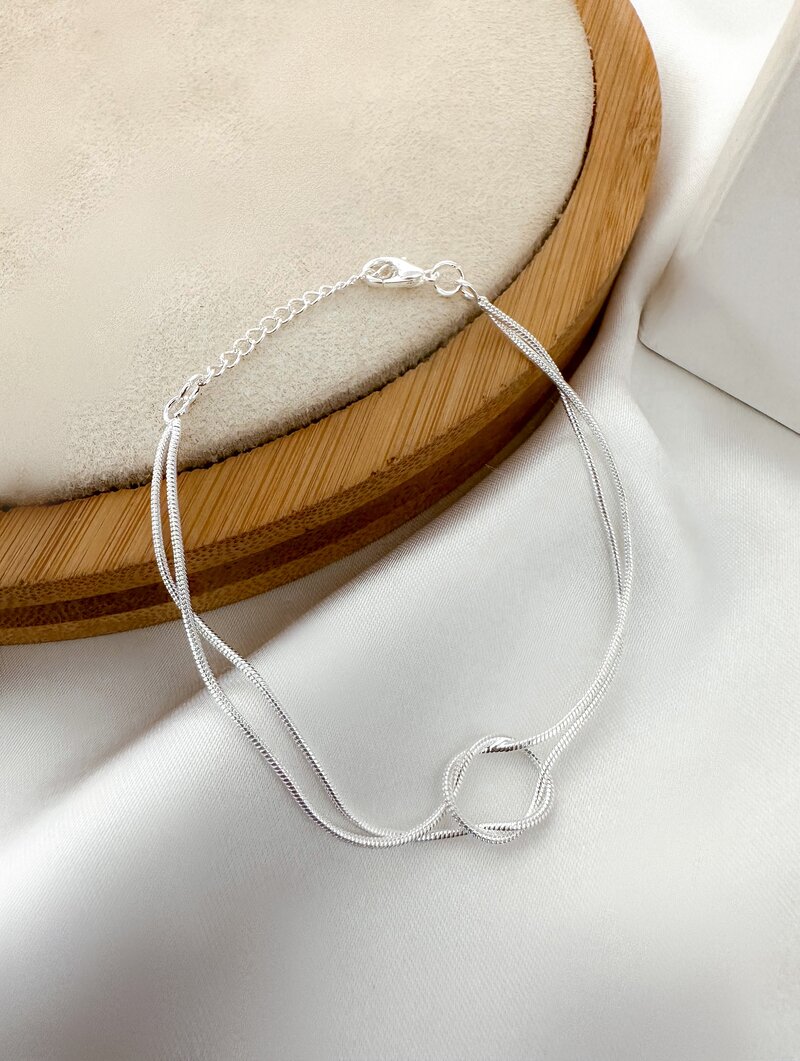 Pulseira Folheada a Prata 925 Dois Fios com Datalhe em Nó