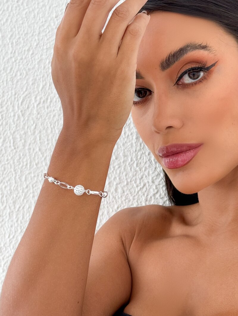 3. Pulseira Folheada a Prata 925 Elos e Esferas Lisas e Trabalhada