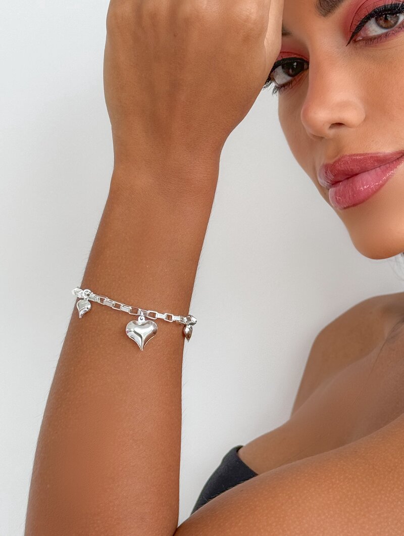 Pulseira Folheada a Prata 925 Elos Quadrado com Corações