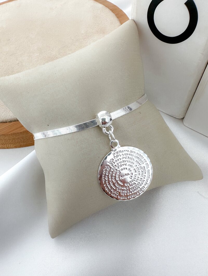 Pulseira Folheada a Prata 925 Fita Laminada com Pingente Pai Nosso