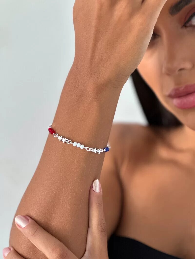 3. Pulseira folheada com cristais e entre meio de estrelas.