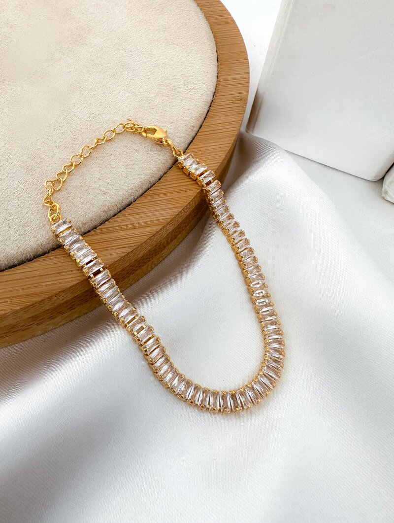 Pulseira Folheado a Ouro 18K Cravejado com Navetes