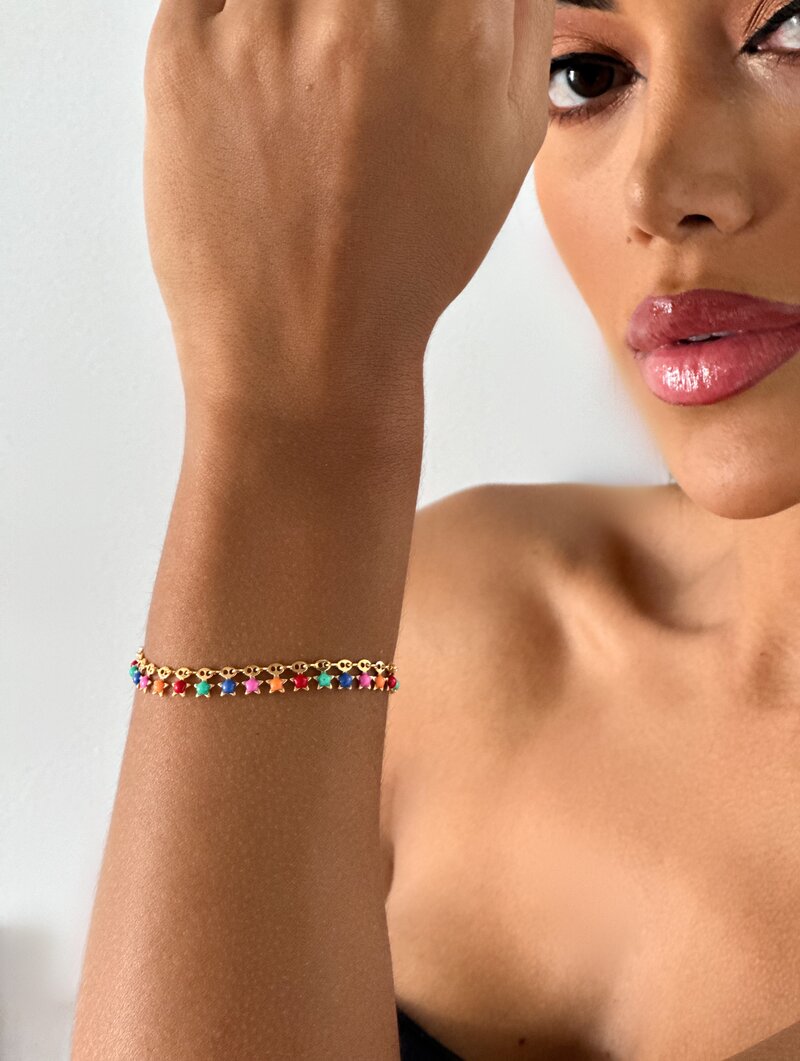 3. Pulseira Folheado a ouro 18K e Prata 925 Estrelas Resinadas Coloridas