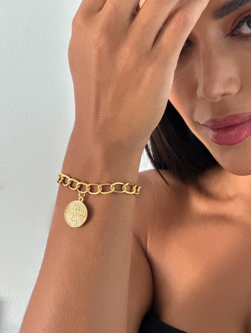 Pulseira Folheado a Ouro 18k e Prata 925 Pingente Texturizado com Espírito Santo