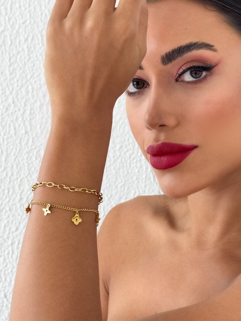Pulseira Folheado a Ouro 18k e Prata Duplo Elos Com Inspiração Grandes Joalherias