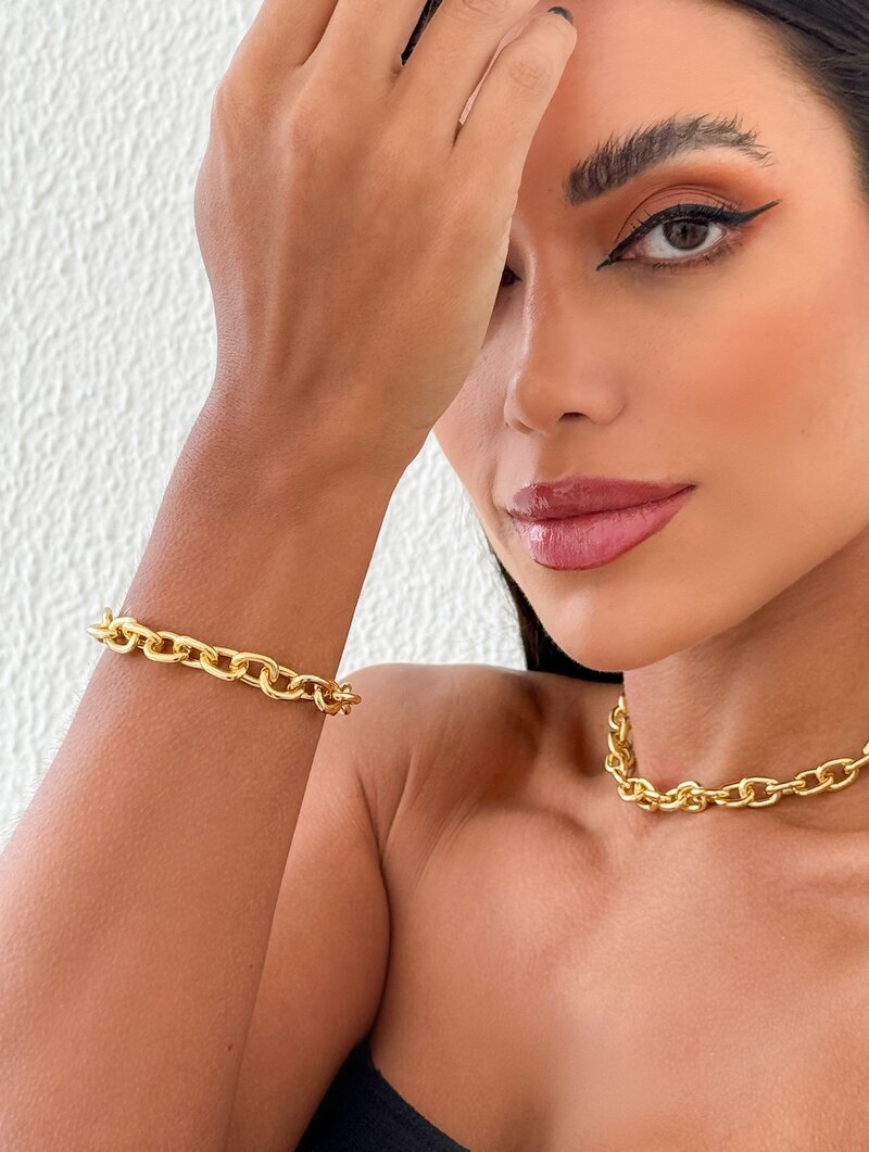 3. Pulseira Folheado a Ouro 18k Elos Ovais Lisos