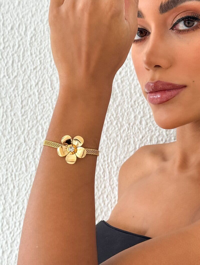 3. Pulseira Folheado a Ouro 18k Manta com Flor