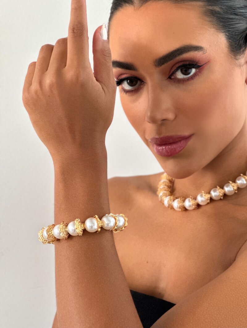 Pulseira Folheado a Ouro 18K Perola Com Entremeios