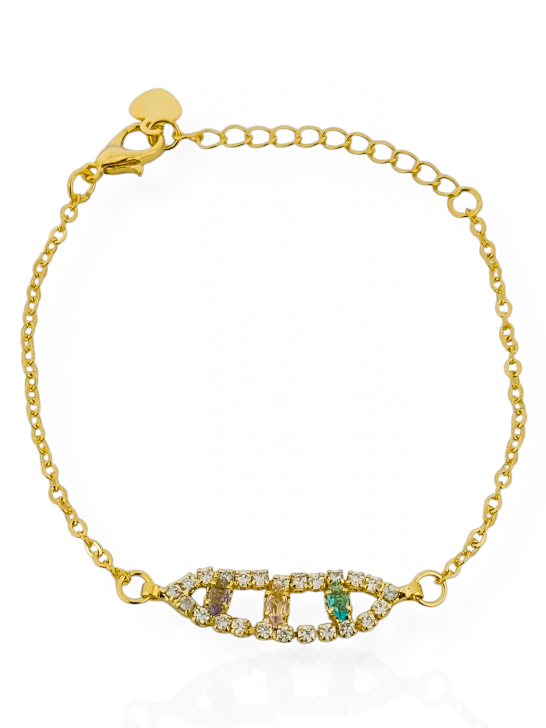 Pulseira Infantil Folheada a Ouro 18k e Prata Cristais Coloridos Com Zircônias