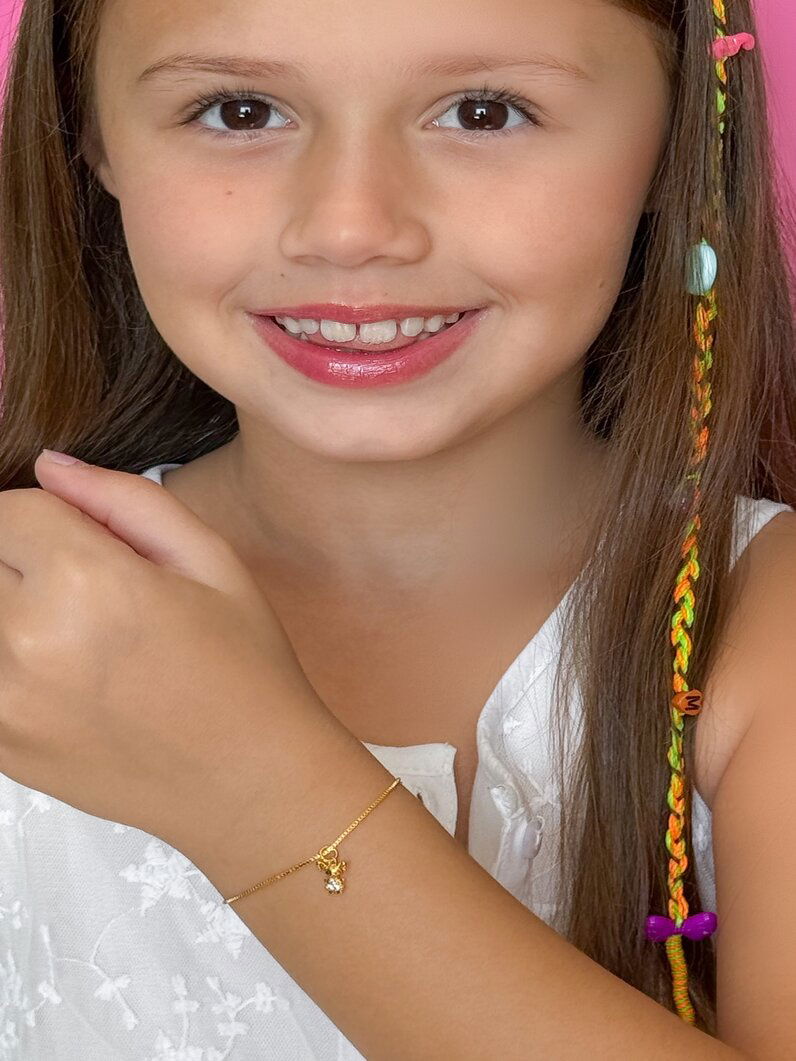 3. Pulseira infantil folheada a ouro 18k e prata veneziana com pingente menina