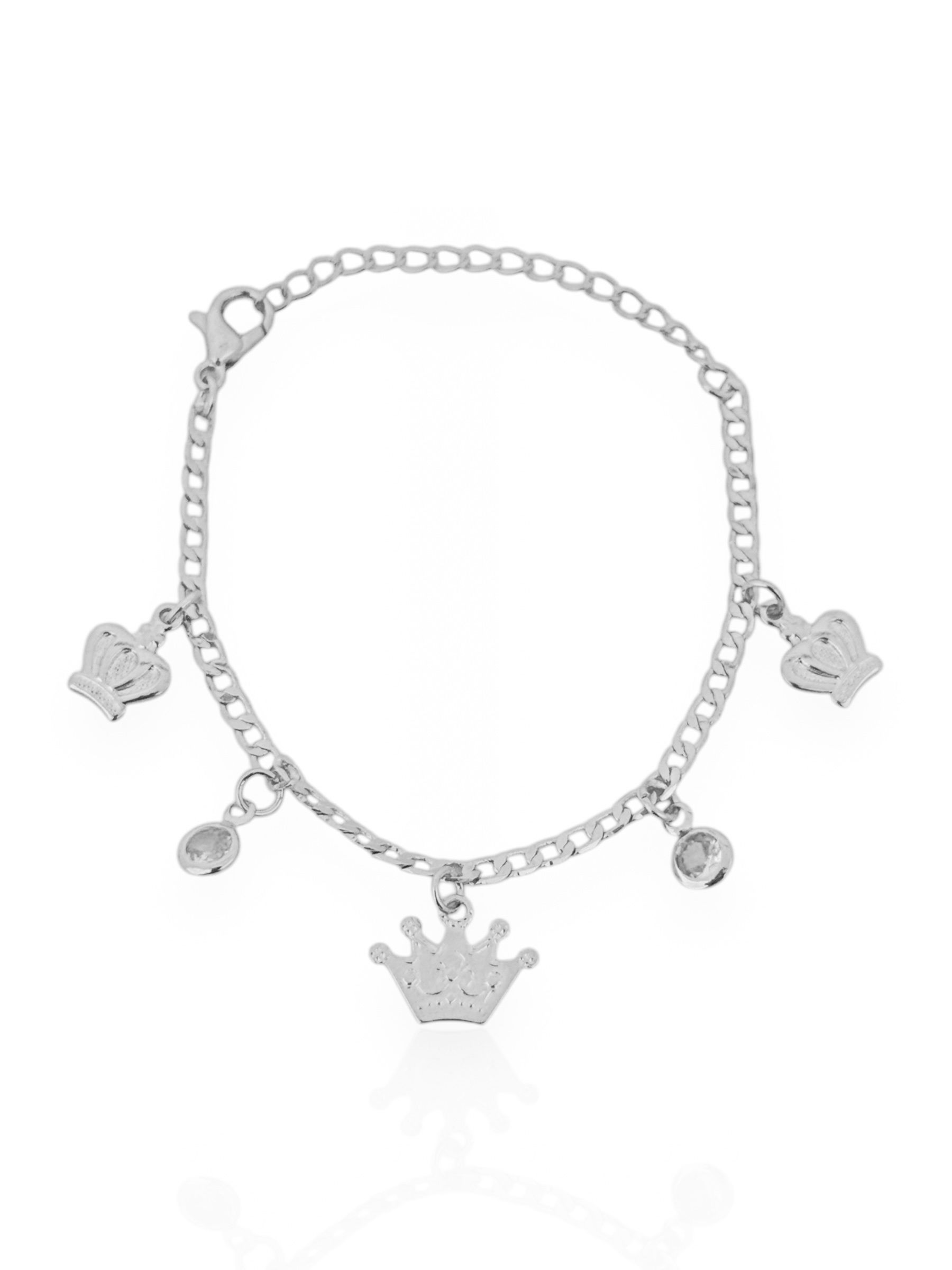 Pulseira Infantil Folheado a Ouro 18k e Prata, Mini Coroas Com Cristais