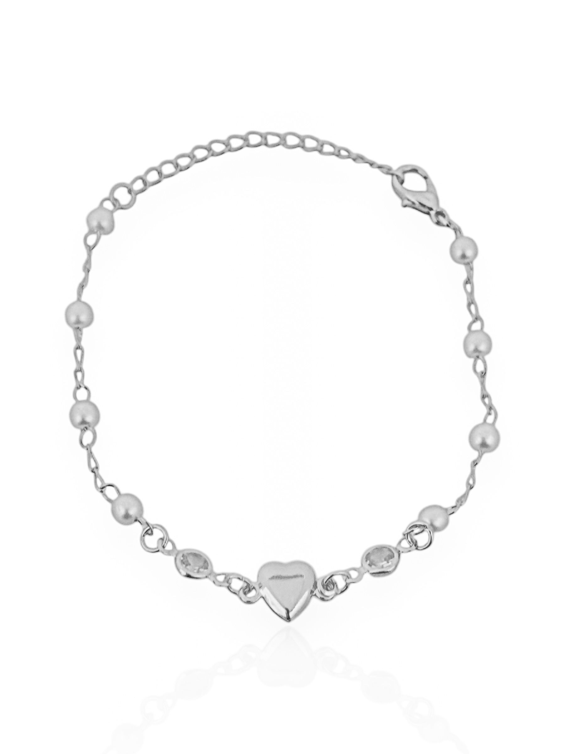 3. Pulseira Infantil Folheado a Prata, Pérolas Com Cristais e Corações