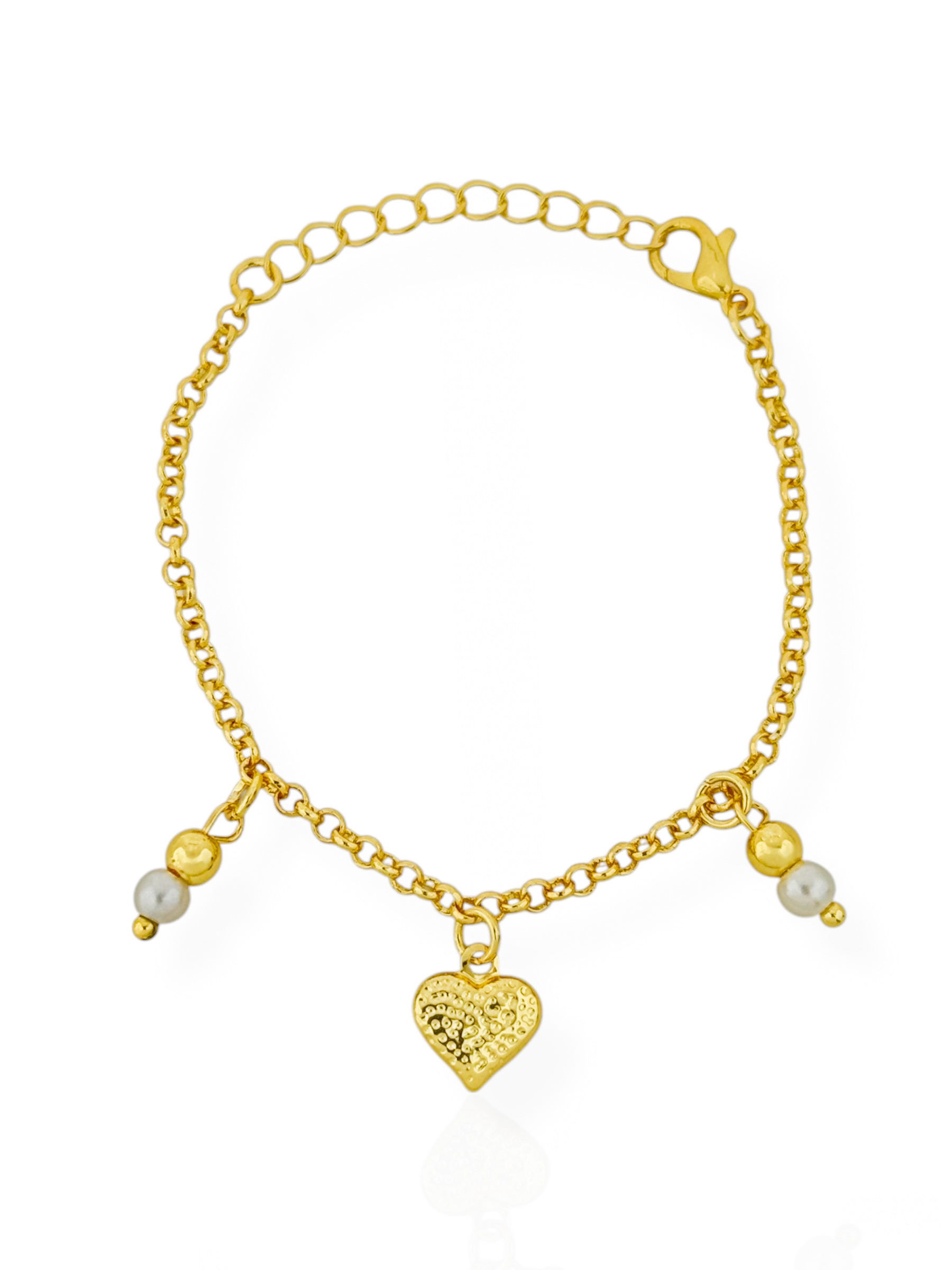 Pulseira Infantil Folheado a Ouro 18k Esfera, Pérola e Coração