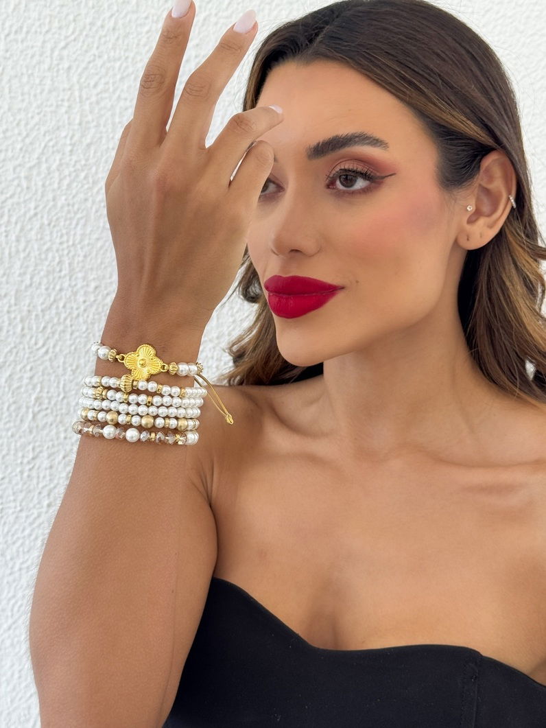 Pulseira Miçangas, Cristais e Moeda Folheado a Ouro 18k