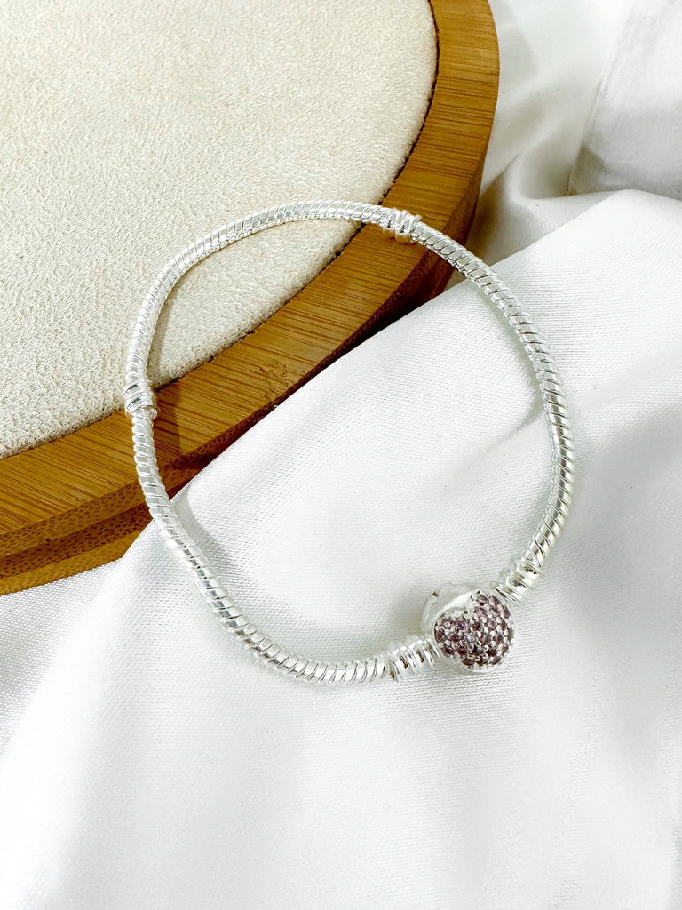 Pulseira para berloques folheado a prata 925 fecho com zirconias rosa