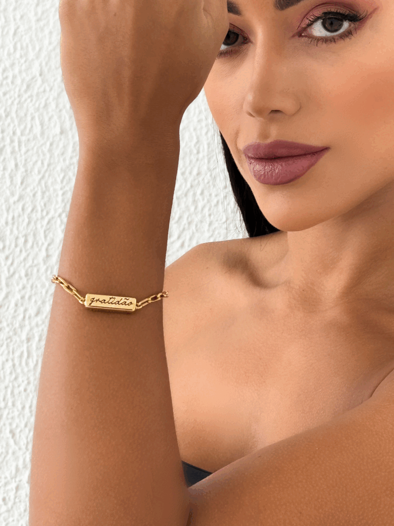 Pulseira Semi Joia Pingente Retangular Com Frases