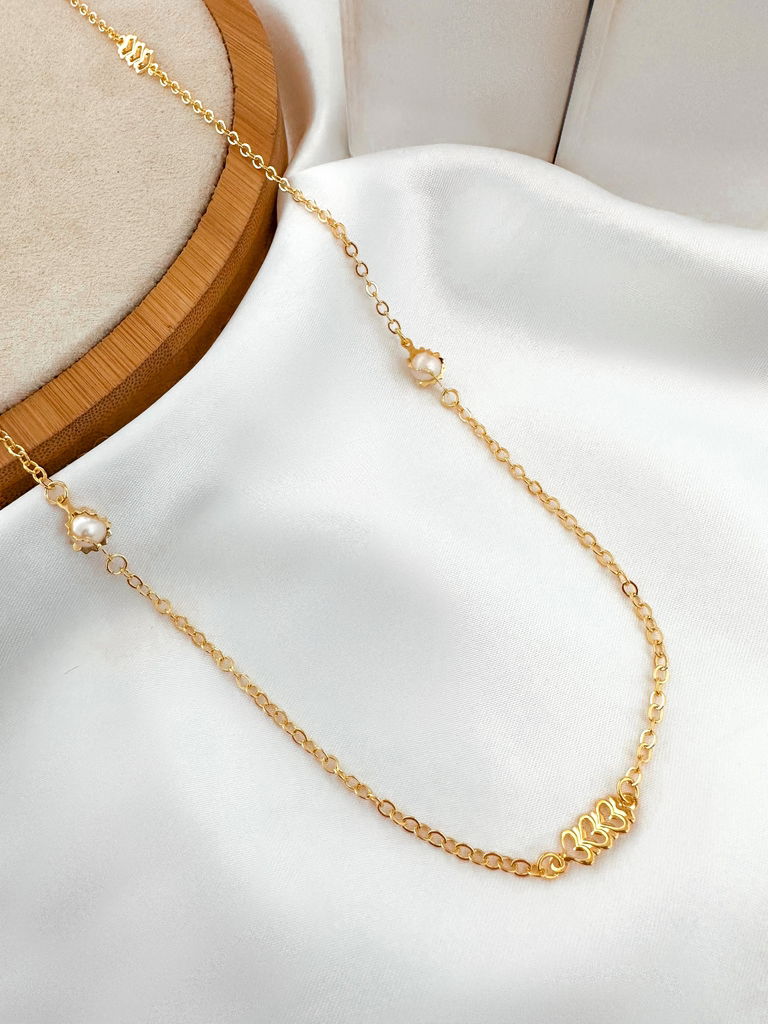 Riveira folheada a ouro com perolas e detalhe de coração.