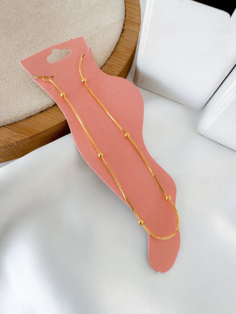 Tornozeleira Folheada a Ouro 18k Cordão Fino com Mini Esferas