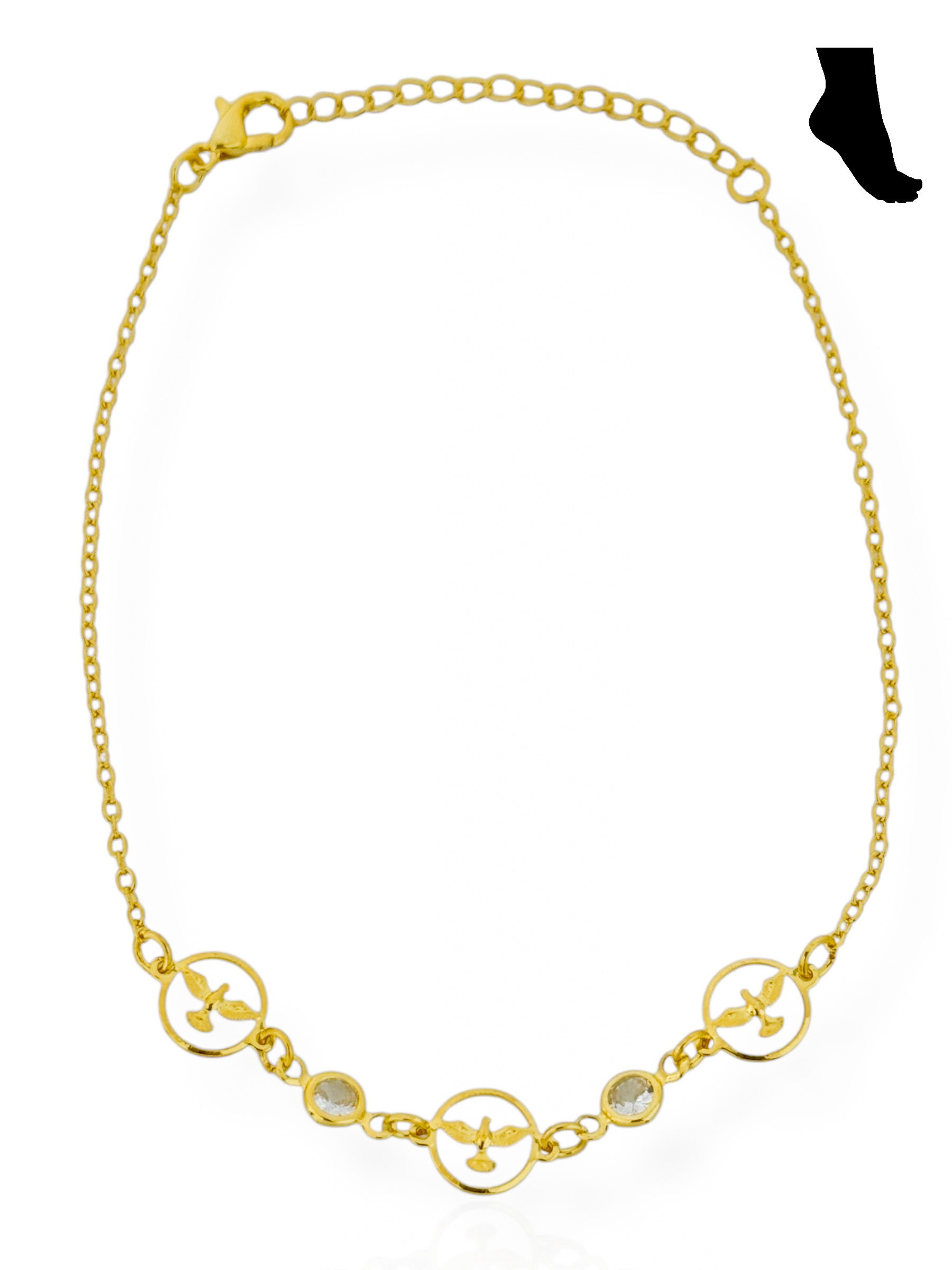 2. Tornozeleira Folheada a Ouro 18k e Prata "Espírito Santo" Com Pontos de Luz