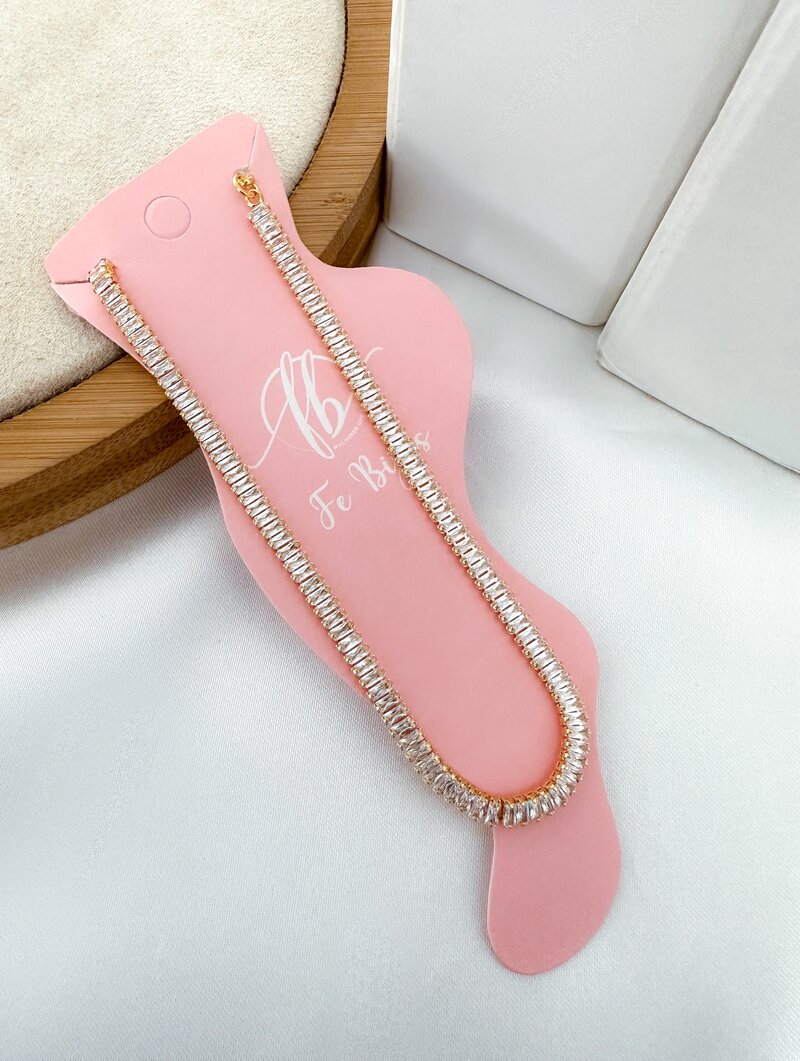 Tornozeleira Folheada a Ouro 18k e Prata Navetes de Zircônias P