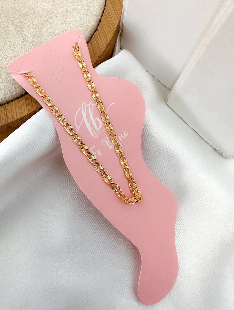 2. Tornozeleira Folheada a Ouro 18k Elos Martelados