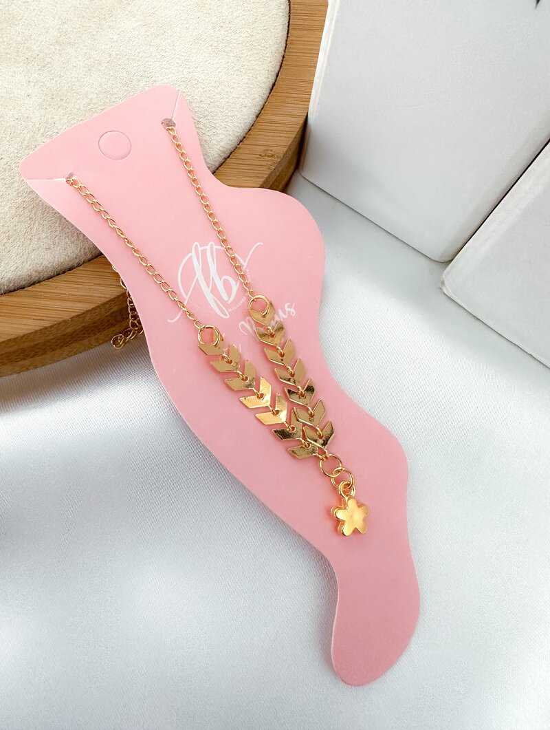Tornozeleira Folheada a Ouro 18k Escamas com Pingente Flor