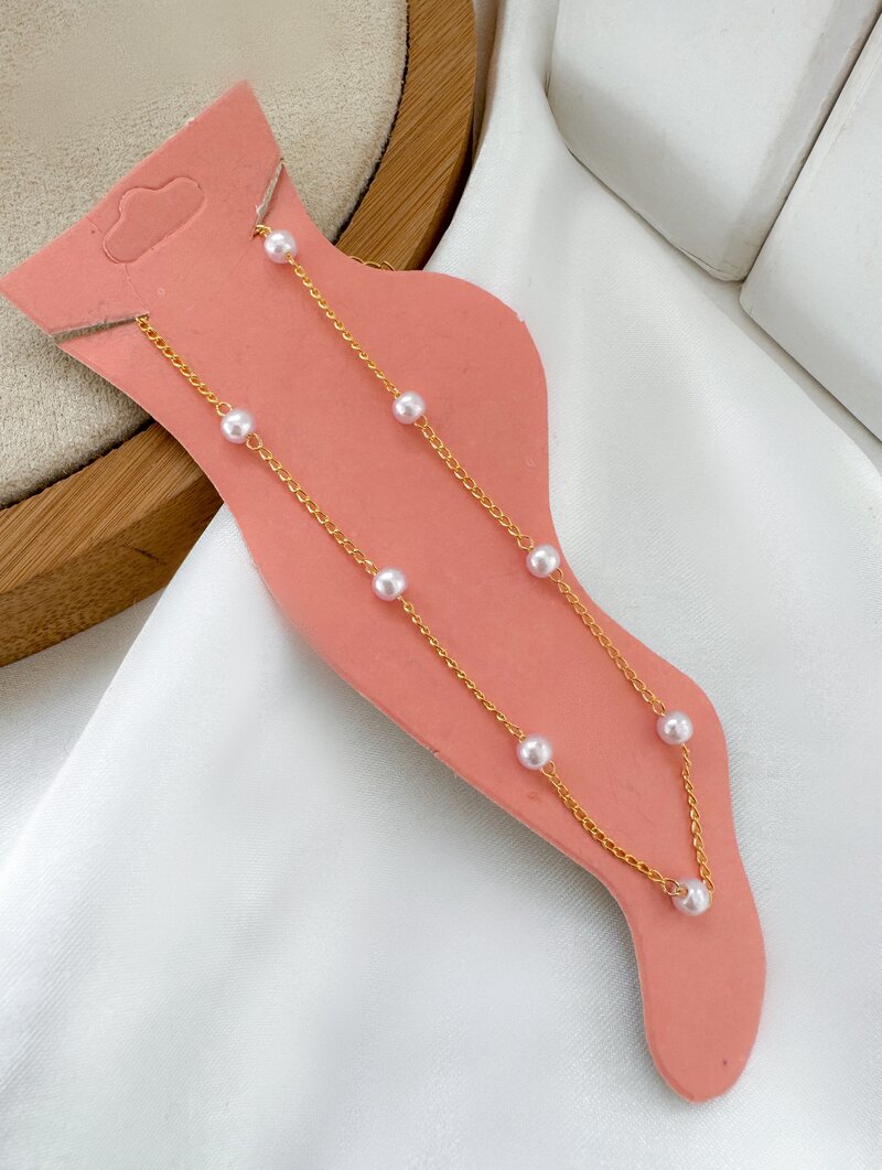 Tornozeleira Folheado a Ouro 18k Corrente Fina com Pérolas
