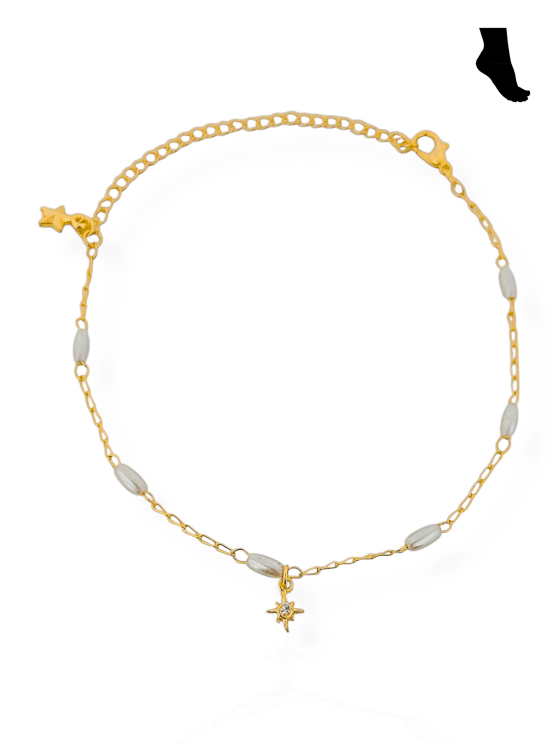 2. Tornozeleira Folheado a Ouro 18k e Prata Com Pérola