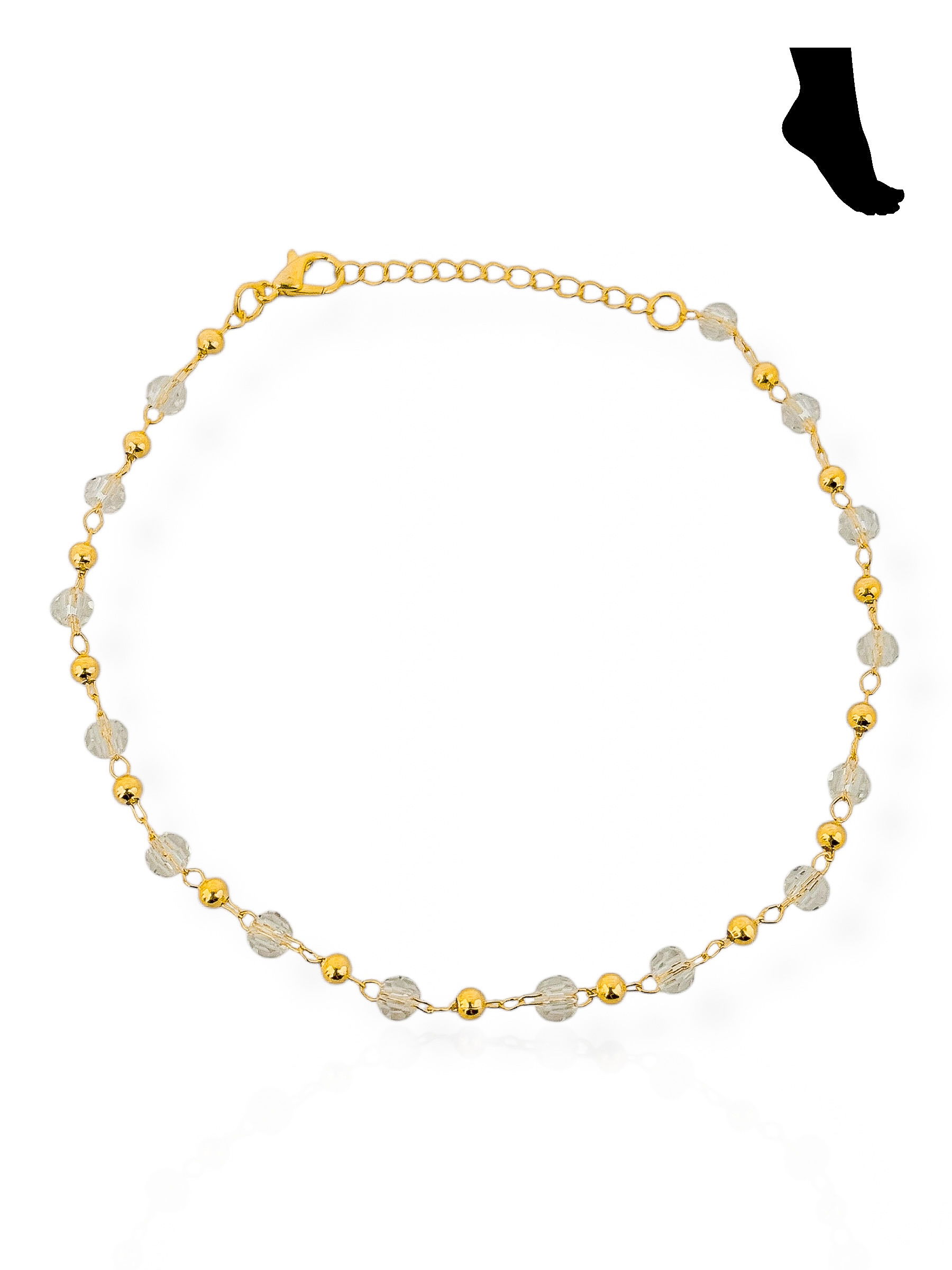Tornozeleira Folheado a Ouro 18k Esfera Com Cristais