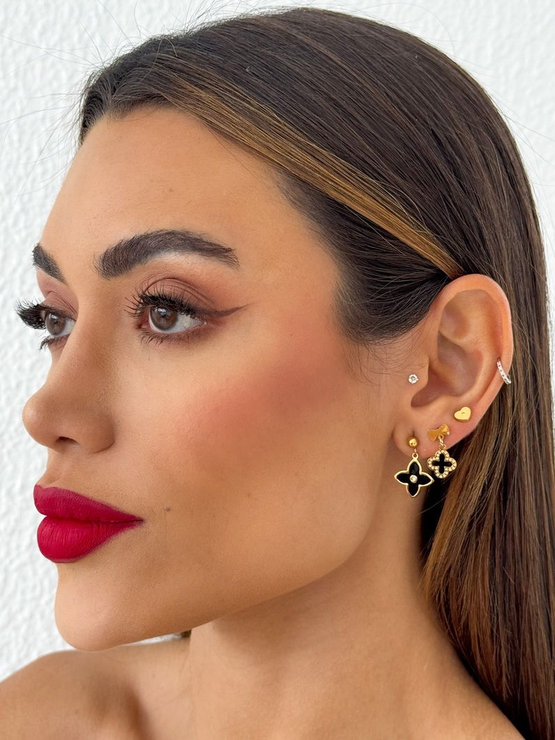 2. Trio de Brinco Aço Inoxidável Folheado a Ouro 18k e Prata Coração, Inspiração Vazada e Inspiração Resinada