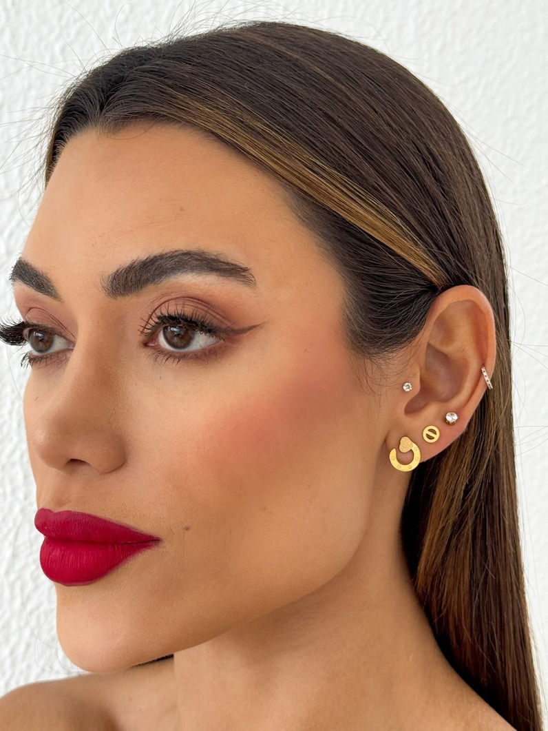 2. Trio de Brinco Aço Inoxidável Folheado a Ouro 18k Inspiração Grandes Marcas e Ponto de Luz