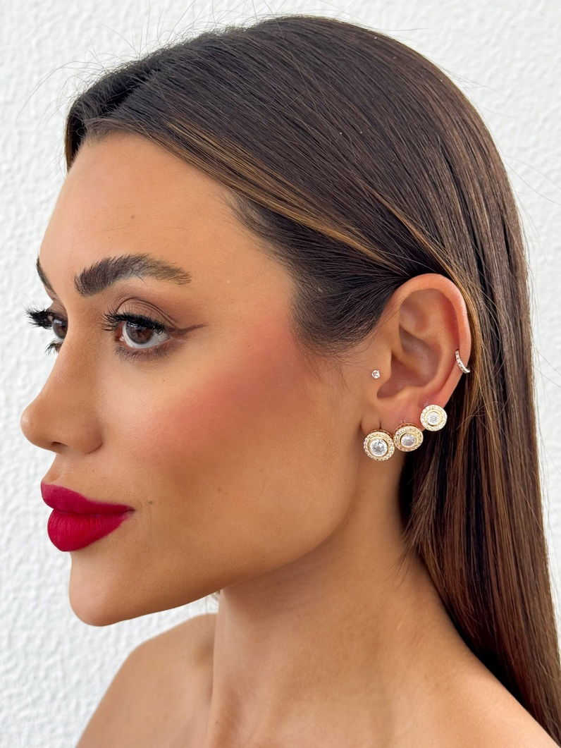 2. Trio de Brinco Folheado a Ouro 18k e Prata Círculos Com Zircônias Coloridos