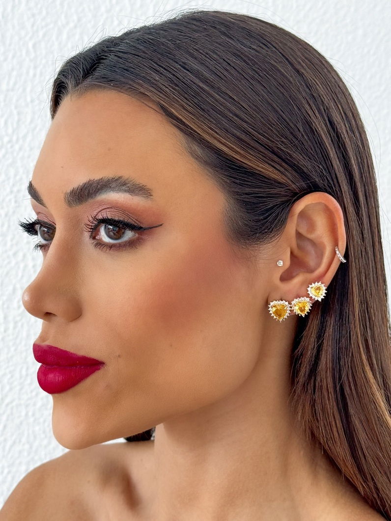 2. Trio de Brinco Folheado a Ouro 18k e Prata Corações Cristal