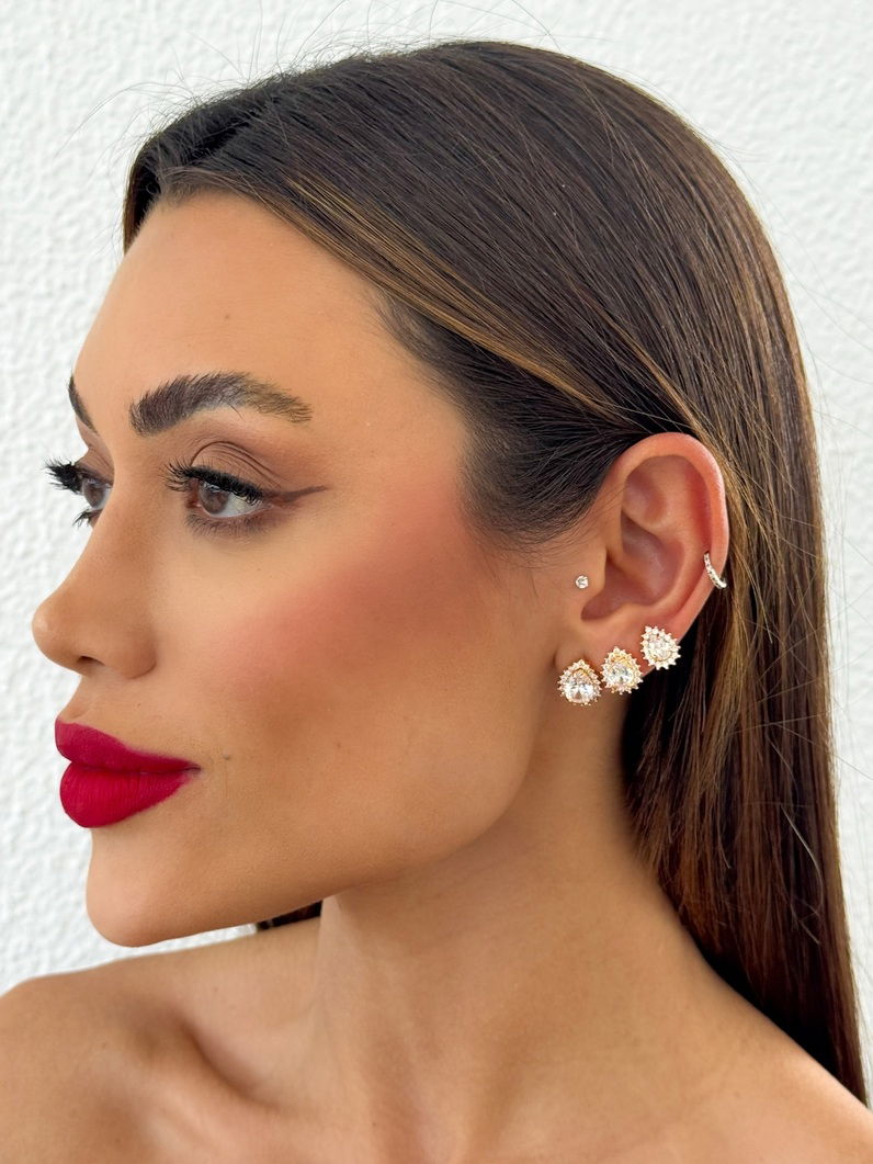 2. Trio de Brinco Folheado a Ouro 18k e Prata Gota Cristal Com Borda Cravejado