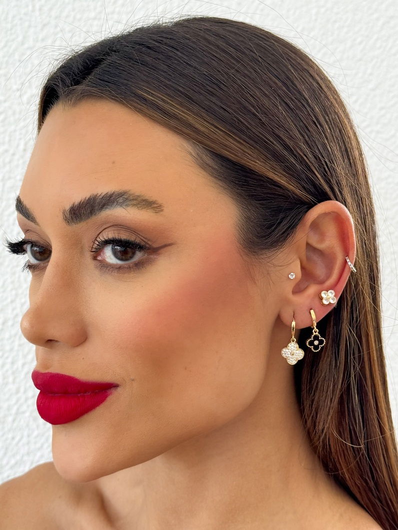 2. Trio de Brinco Folheado a Ouro 18k e Prata Inspiração Vg. Resinada e Cravejada