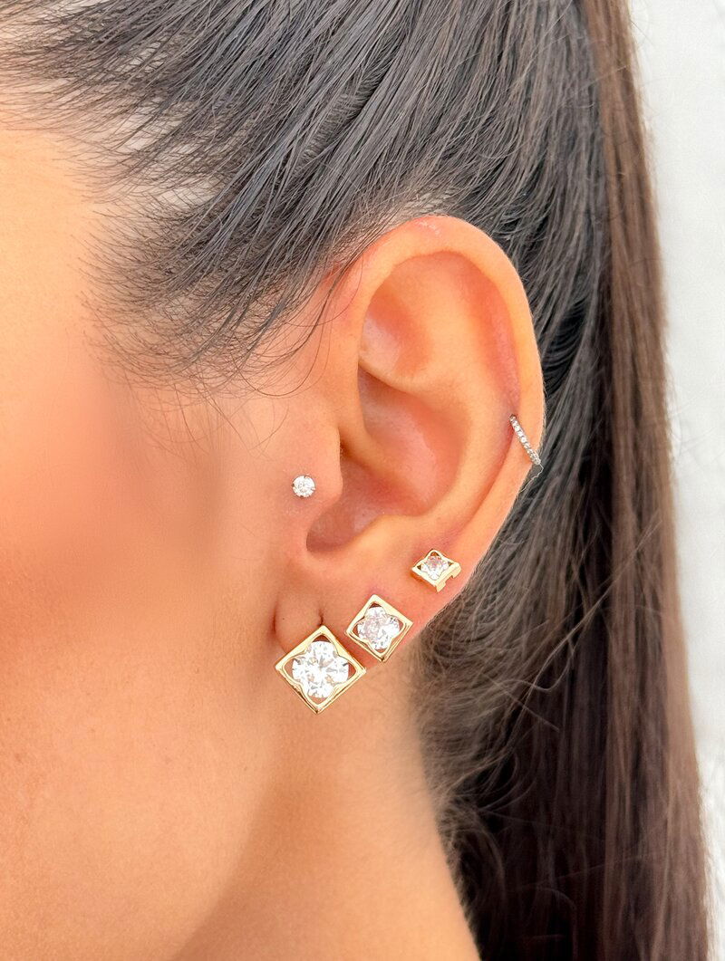 3. Trio de Brinco Folheado a Ouro 18k e Prata Quadrados com Zircônias