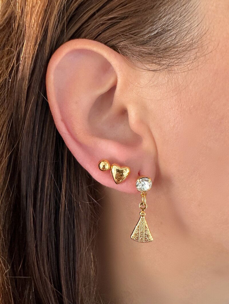 3. Trio De Brinco Folheados a Ouro 18k Ponto De Luz, Coração e Nossa Senhora