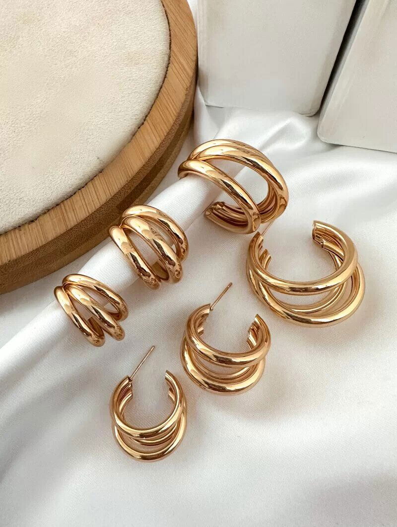3. Trio de Brincos Folheado a Ouro 18k e Prata Argola Tripla