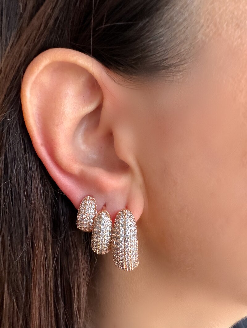 3. Trio de Brincos Folheado a Ouro 18k e Prata Argolas com Fecho Cravejadas